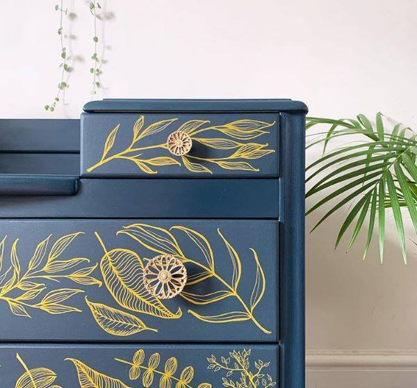 This upcycled piece painted beautifully by customer Hannah (@thelittlefurnitureroom) was featured in the BBC show 'Money for Nothing'! Hannah painted it with our chalk paint in a new colour of ours, and added the intricate hand drawn details. 🖤